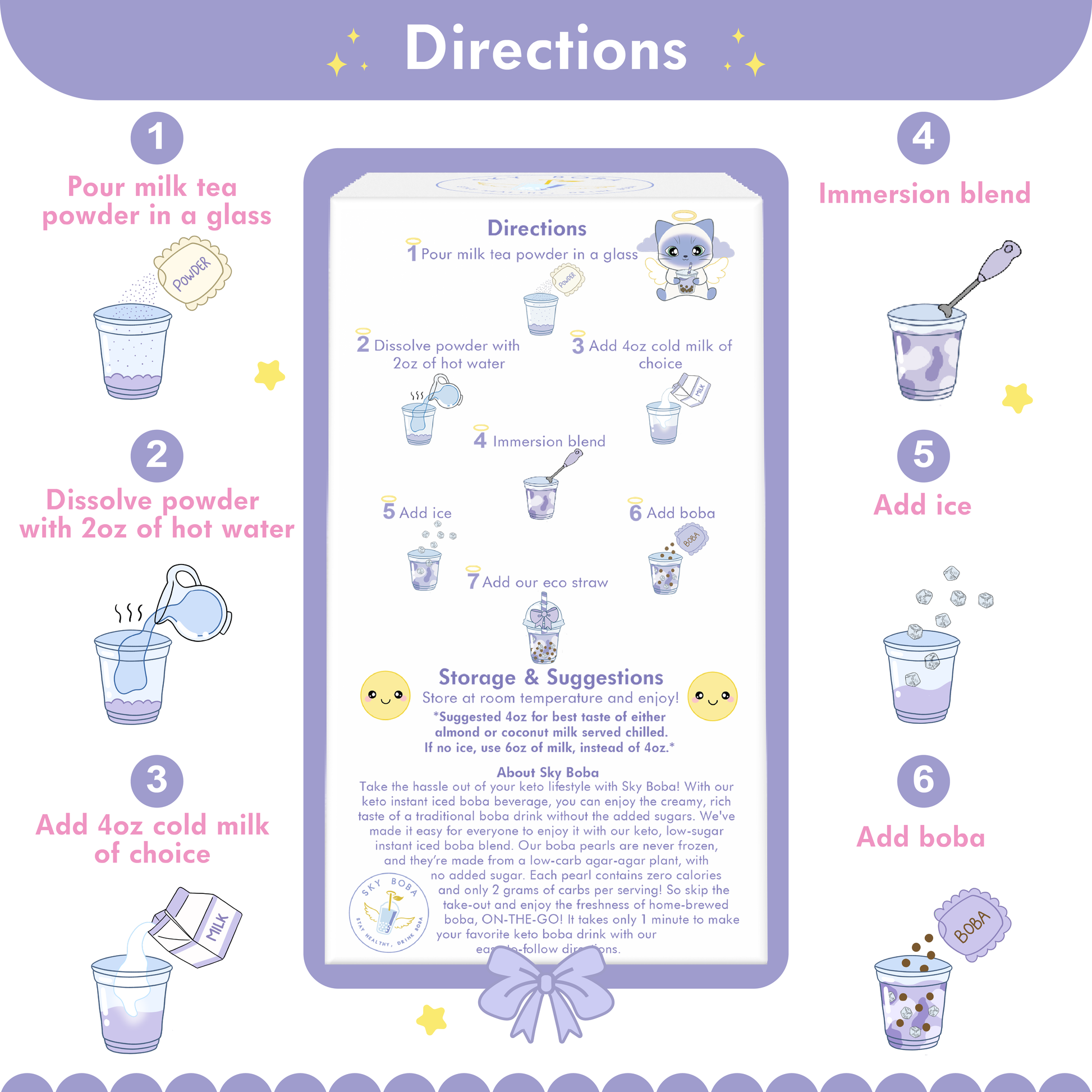 6-Set Kit: Includes 6 taro milk tea powders, 6 boba pearl packets, and 6 boba straws.